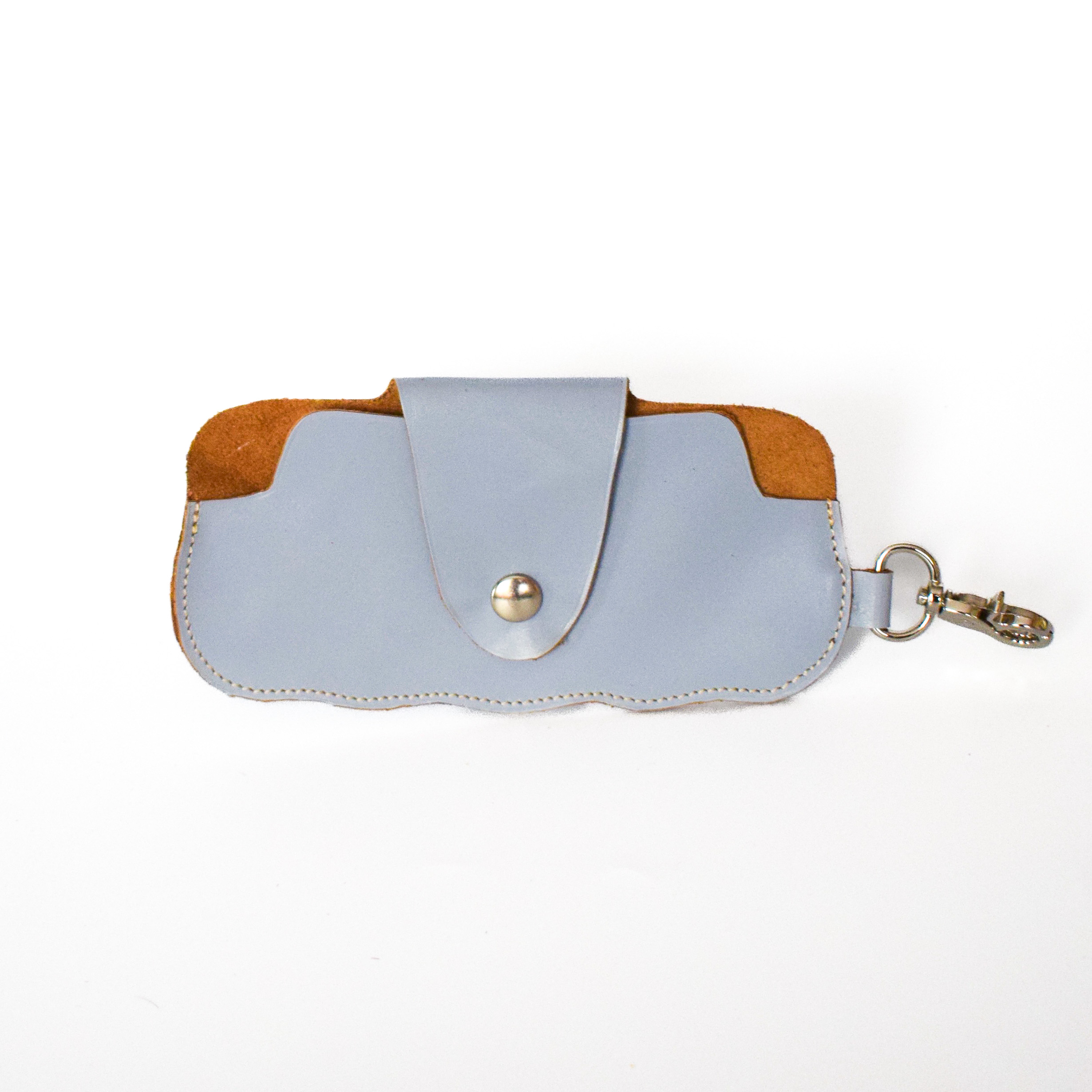 Cet étui à lunettes en cuir bleu ciel allie douceur des formes et savoir-faire artisanal. Entièrement réalisé à la main dans mon atelier à Aigues-Vives, il protège vos lunettes avec élégance tout en apportant une touche de couleur à votre quotidien.