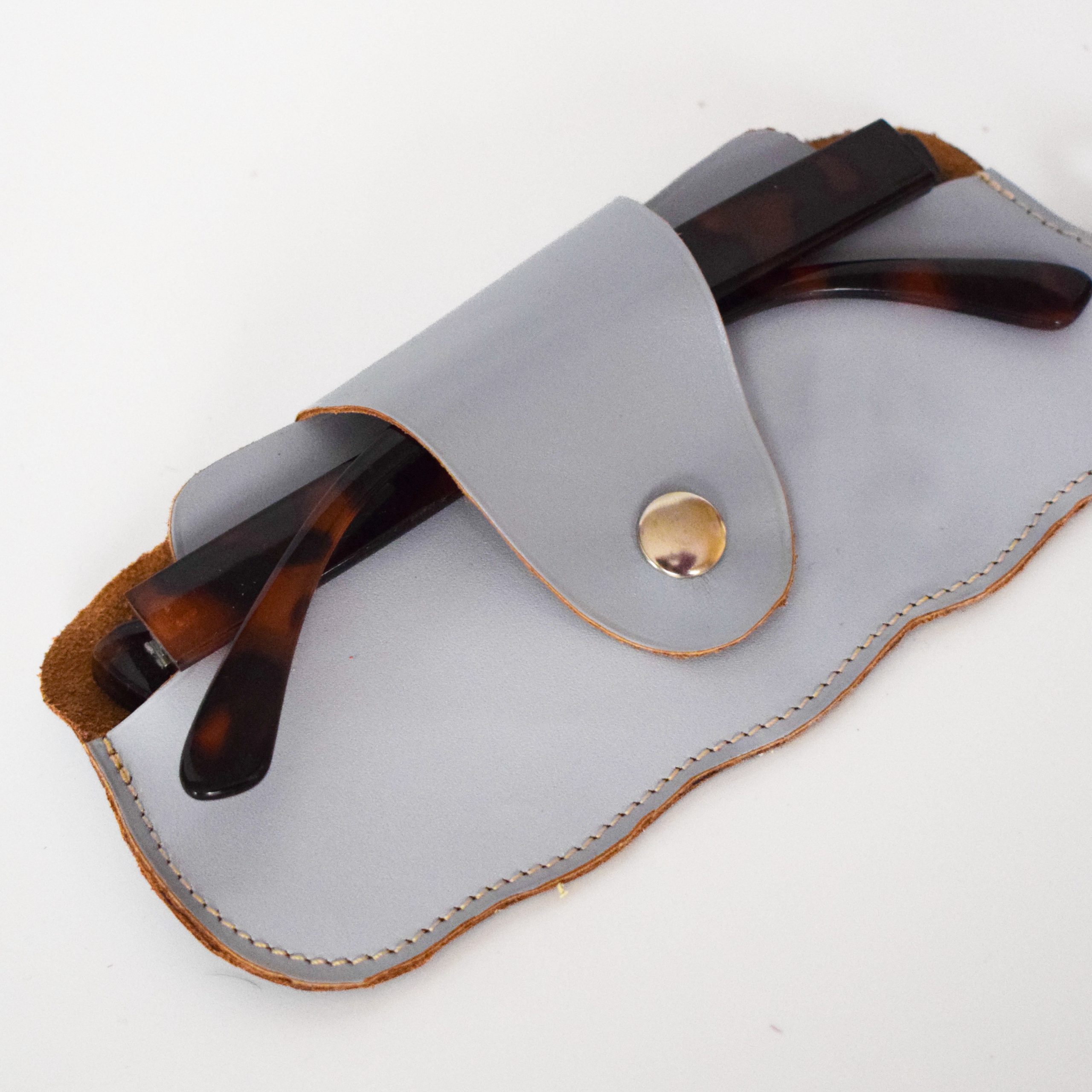 Étui à lunettes en cuir bleu gris