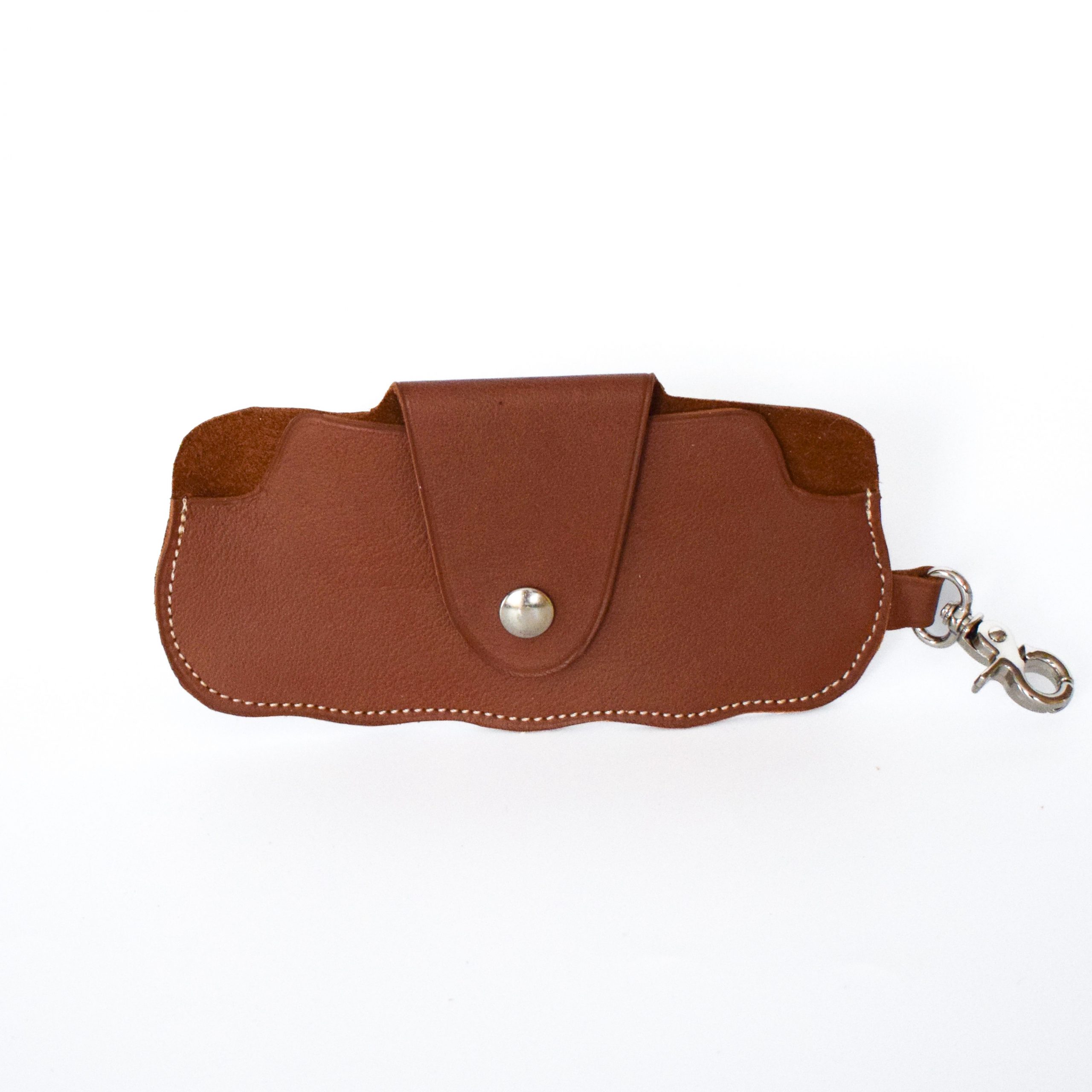 La piqûres écrues soulignent ses lignes avec délicatesse, tandis que la fermeture pression nickelée maintient vos lunettes en sécurité.