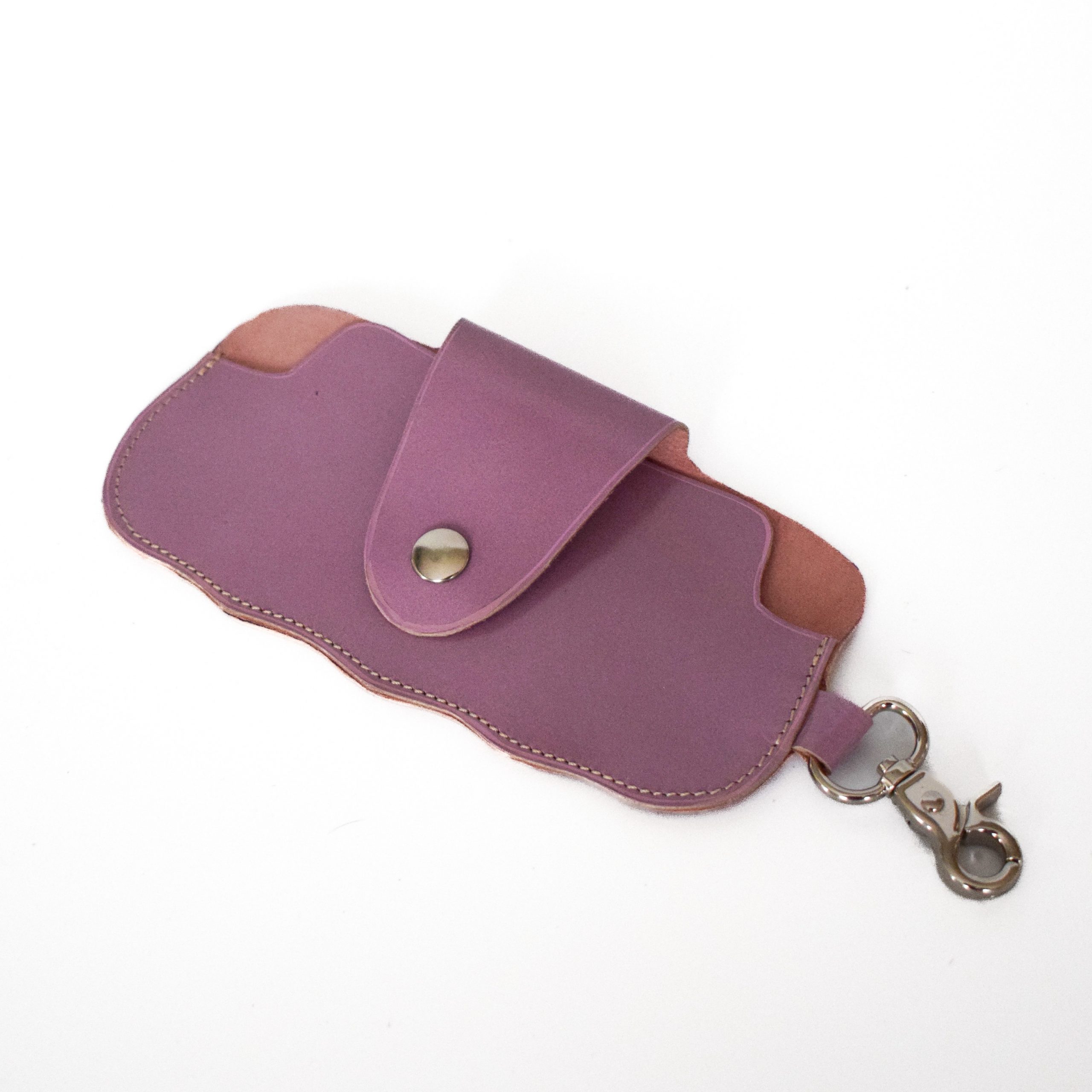 Cet étui à lunettes en cuir mauve brillant allie douceur des formes et savoir-faire artisanal. Entièrement réalisé à la main dans mon atelier à Aigues-Vives, il protège vos lunettes avec élégance tout en apportant une touche de couleur à votre quotidien.