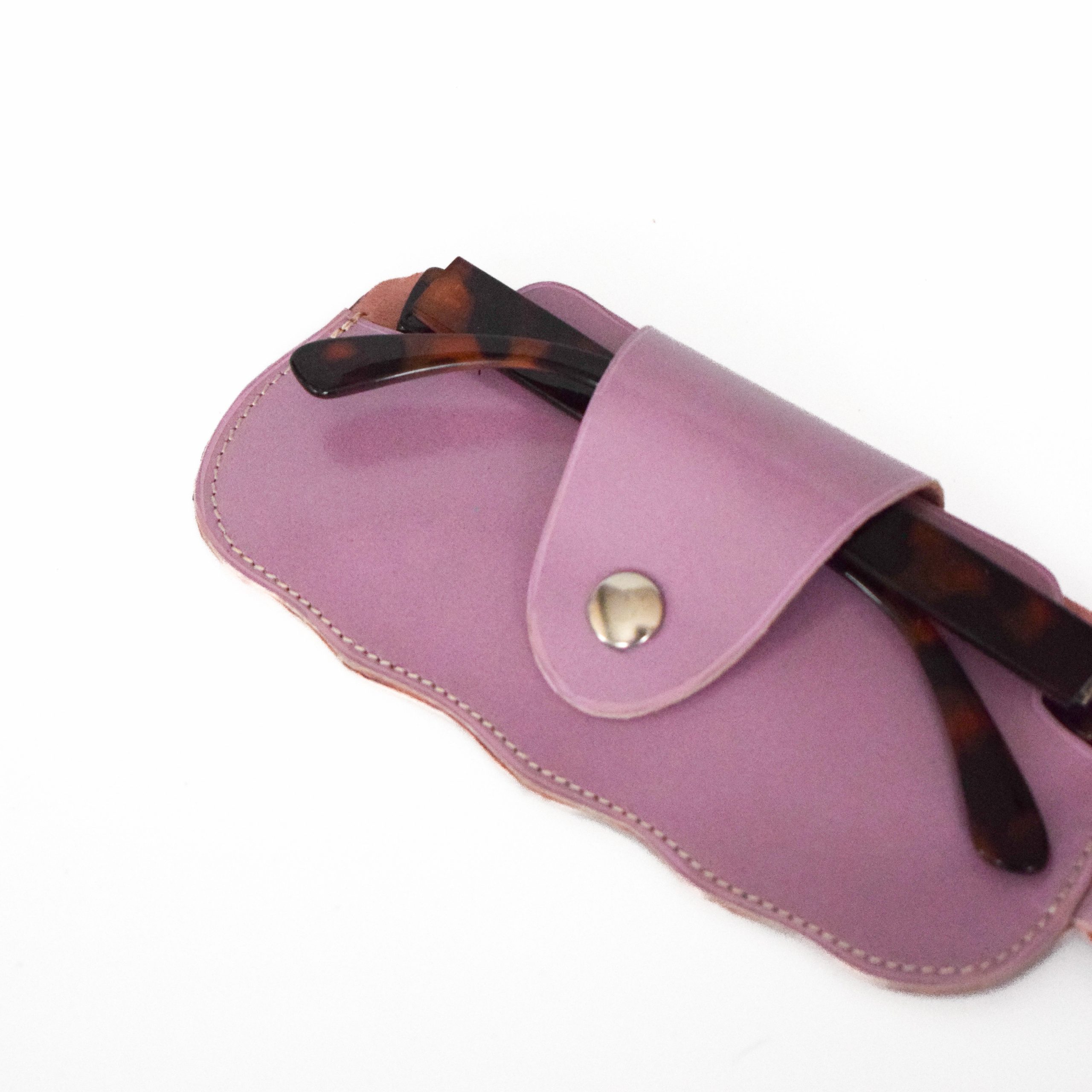 Etui a Lunettes Cuir Mauve Brillant