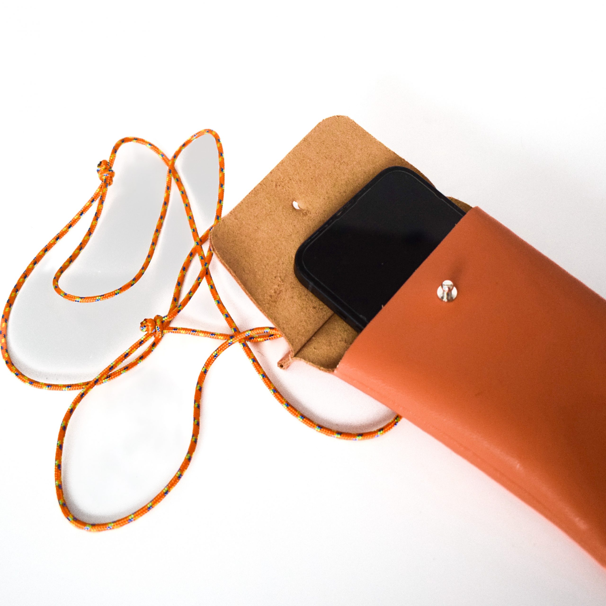 Pochette téléphone en cuir corail