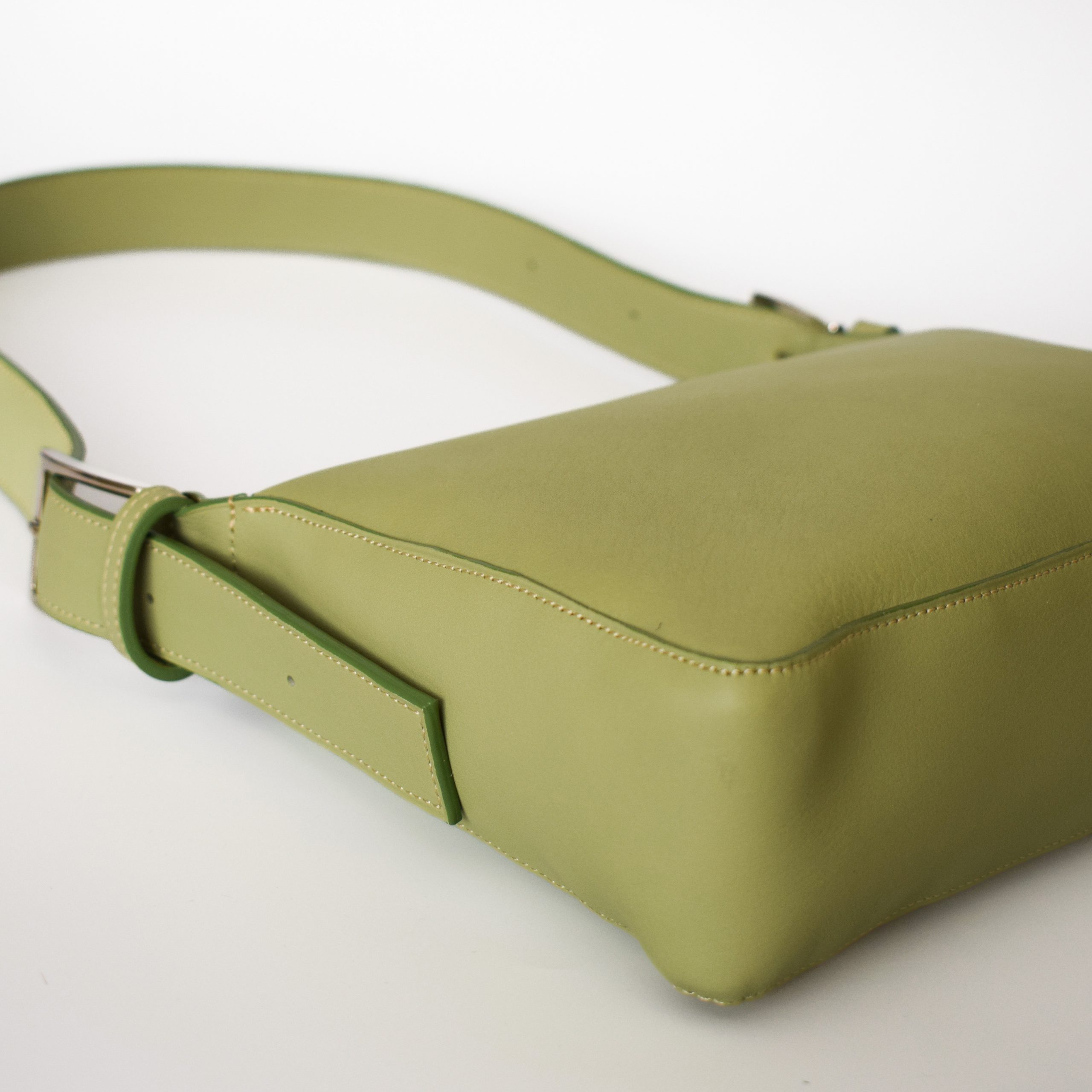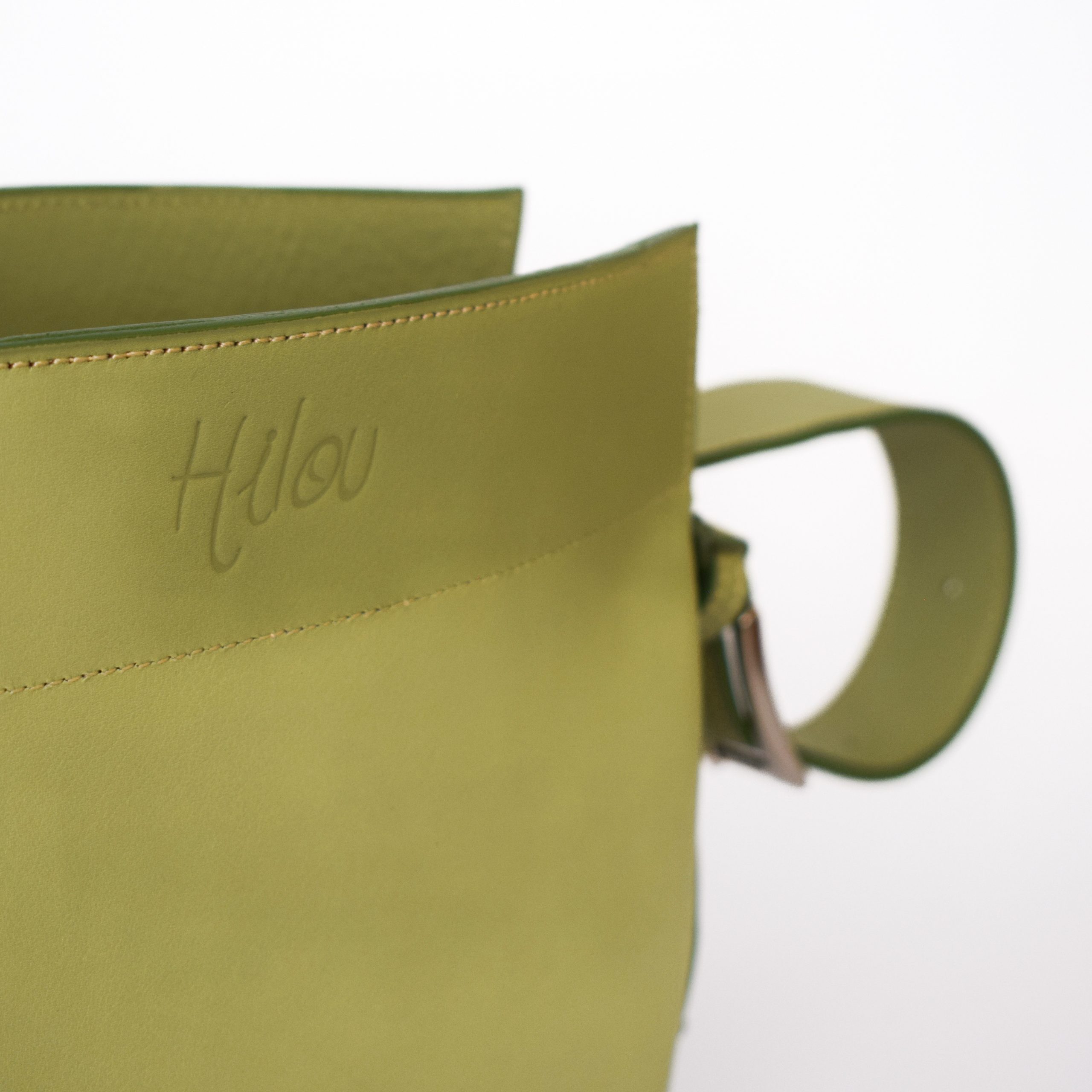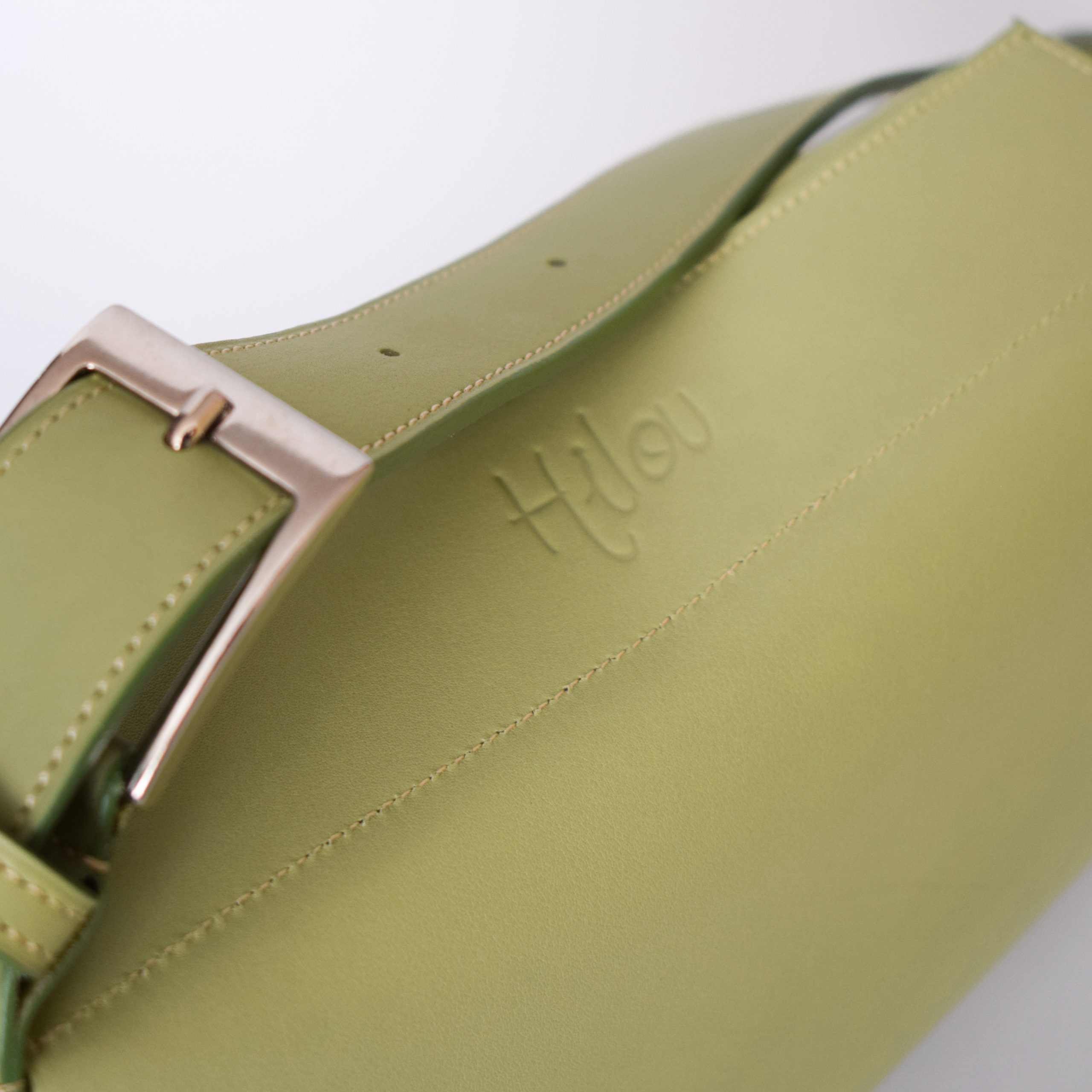 • Cuir veau souple vert eau/kaki revalorisé : souple, lumineux, et sélectionné pour sa qualité et sa durabilité.