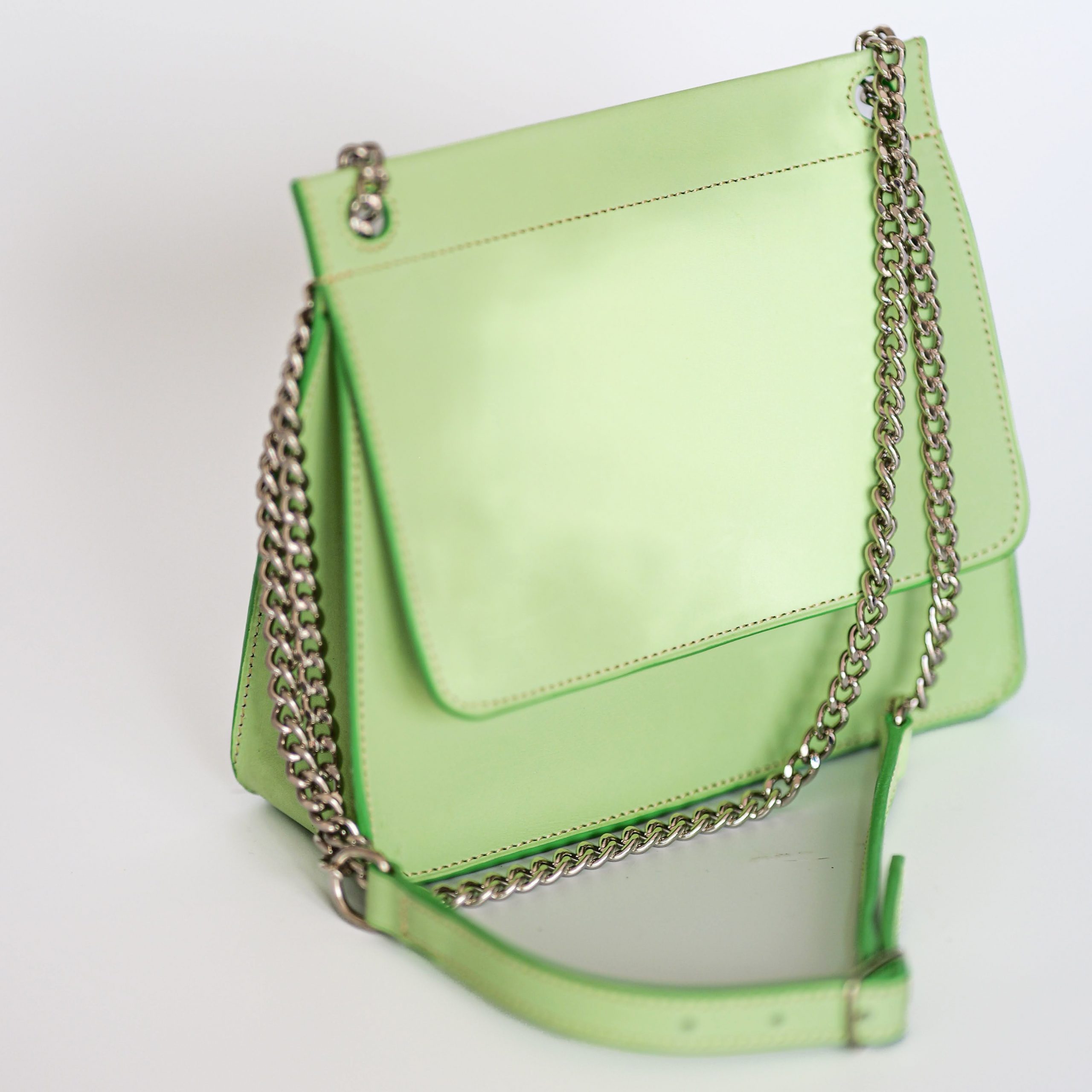 Découvrez ce magnifique sac en cuir nubuckk lissé vert, conçu et fabriqué entièrement à la main dans mon atelier à Aigues-Vives, dans le Gard. Ce sac se distingue par sa qualité artisanale et ses détails soigneusement travaillés.