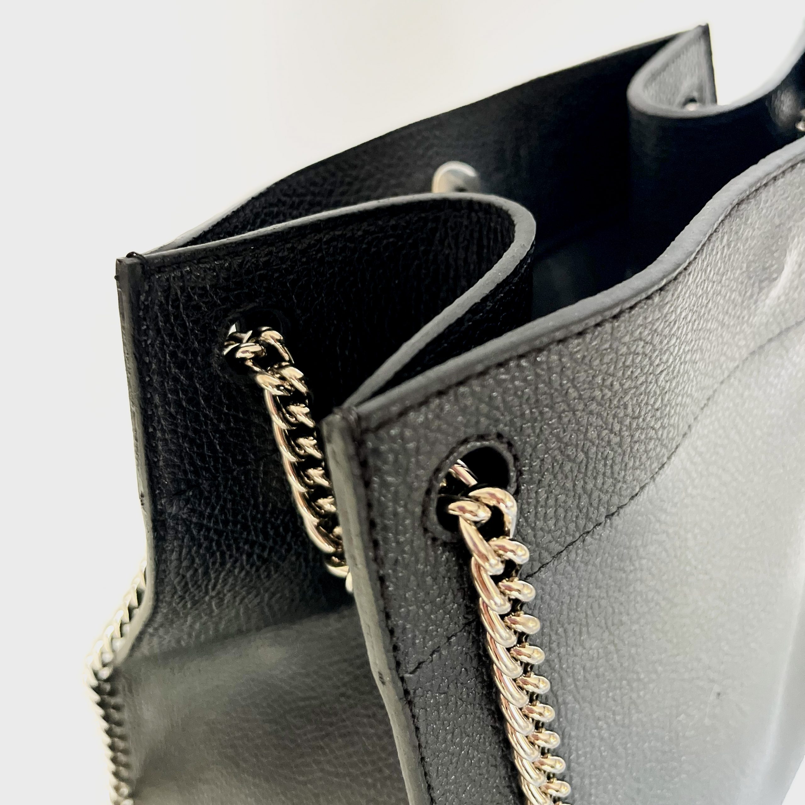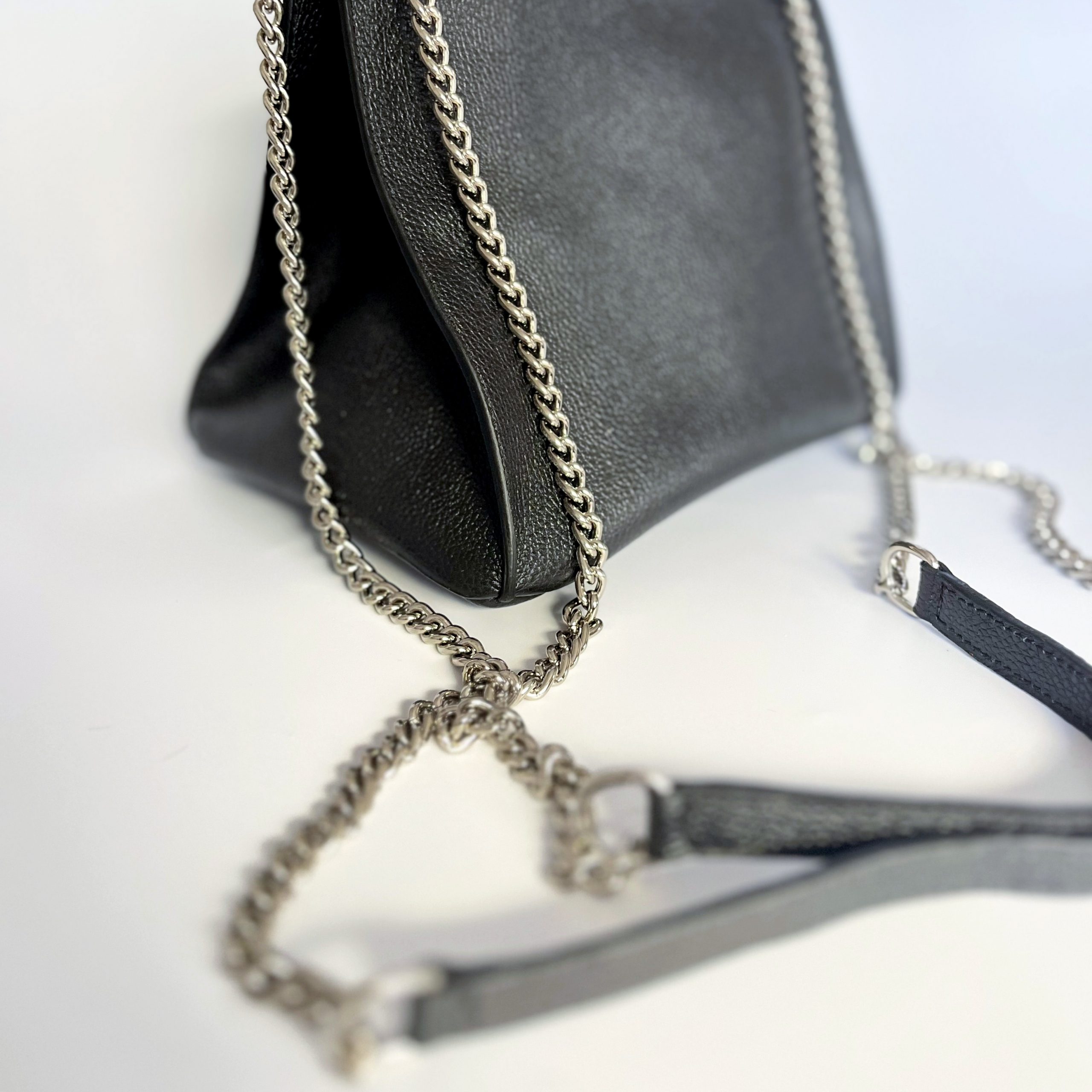 – Porté bandoulière : Avec une chaîne et une bandoulière en cuir pour un style chic et polyvalent.