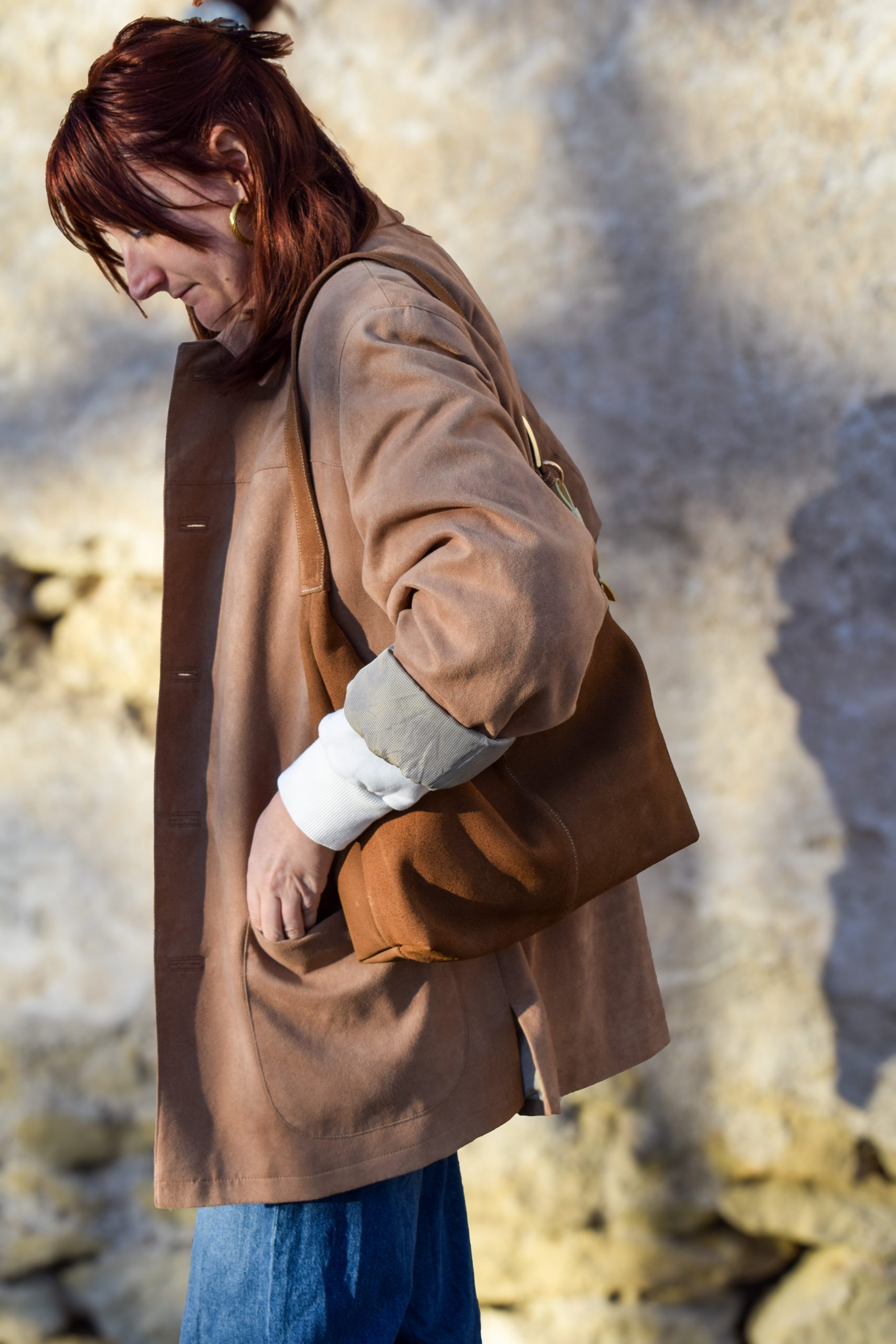 Découvrez Mona, un sac en cuir marron glacé, élégant et pratique, entièrement réalisé à la main dans mon atelier à Aigues-Vives, dans le Gard.