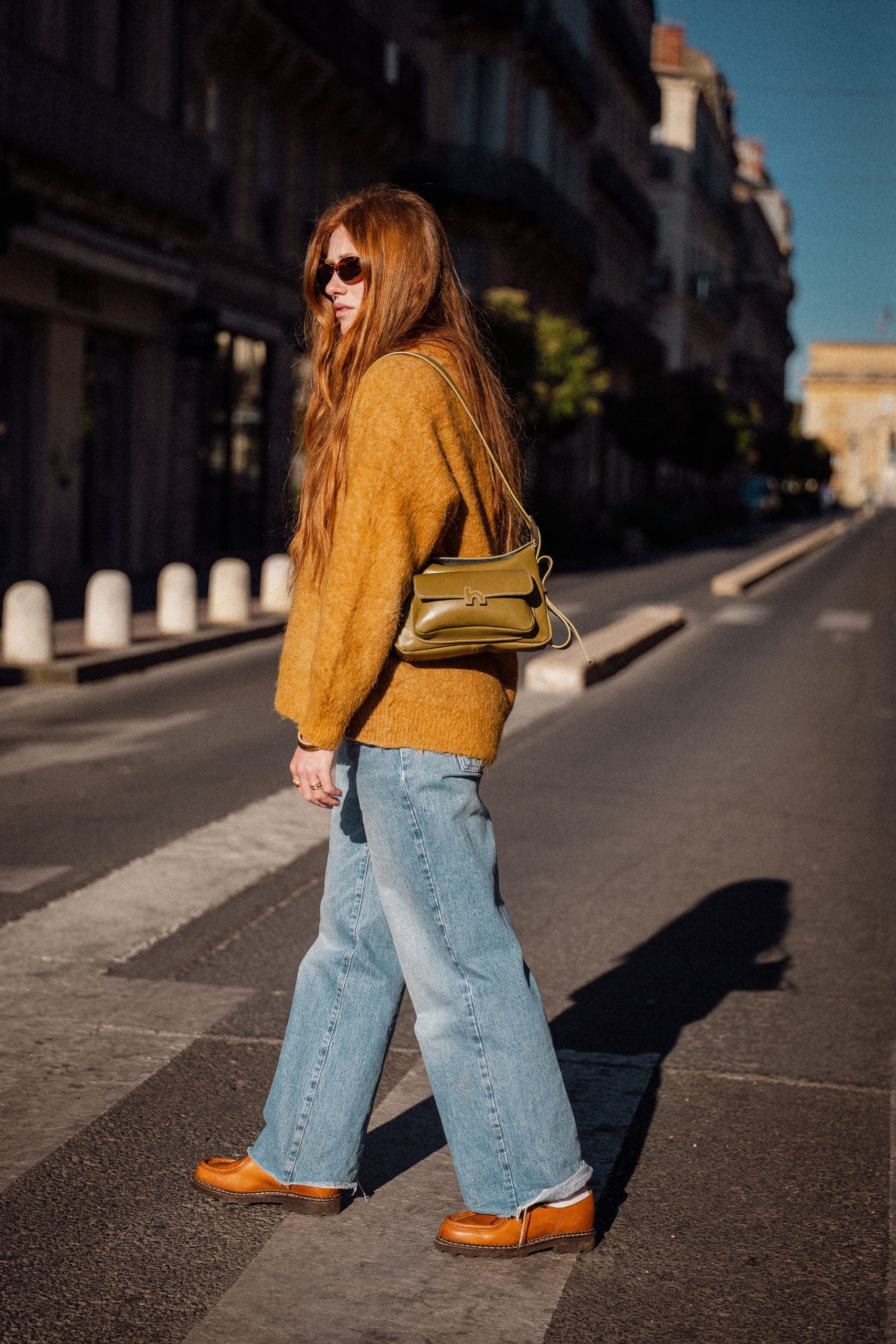Ce modèle en cuir vachette kaki séduit par son équilibre entre caractère et douceur. Sa ligne structurée est adoucie par un cuir au toucher souple, tandis que sa doublure en alcantara bleu gris apporte une touche délicate et raffinée.